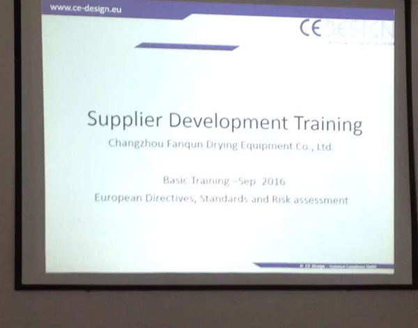 2016年9月2日至9月8日,我公司專門聘請(qǐng)德國(guó)專家為公司員工進(jìn)行歐洲機(jī)械指令、CE(CE certification)等安全方面的培訓(xùn)。我公司組織技術(shù)、生產(chǎn)、質(zhì)檢、工藝、售后等部門認(rèn)真聽取課程內(nèi)容,各部門結(jié)合自身情況積極互動(dòng),取得了良好的效果。經(jīng)過本次培訓(xùn),我公司各環(huán)節(jié)的行為將更加規(guī)范化、標(biāo)準(zhǔn)化,未來將會(huì)為客戶提供更好的服務(wù)。