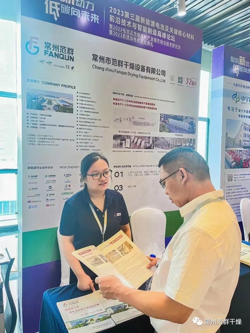 “第三屆新能源電池及關(guān)鍵核心材料前沿技術(shù)與智能制造高峰論壇”于7月18日-20日在合肥·中國書法大廈圓滿落幕!常州范群作為國內(nèi)最早進入鋰電領(lǐng)域的干燥設(shè)備企業(yè)之一,在電池材料干燥焙燒方面積淀深厚。常州范群現(xiàn)場展示了鋰電池干燥焙燒系統(tǒng)成套裝置,及在新能源、新材料等領(lǐng)域的諸多優(yōu)秀項目案例,現(xiàn)場吸引了眾多行業(yè)同仁交流探討。