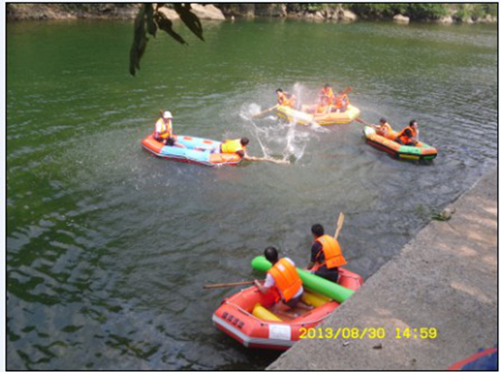 第二天早餐后我們來(lái)到了華東地區(qū)最后一篇原始森林、國(guó)家級(jí)野生動(dòng)植物自然保護(hù)區(qū)石臺(tái)牯牛降,游覽參觀國(guó)家級(jí)自然保護(hù)區(qū)、AAAA級(jí)景區(qū)石臺(tái)牯牛降龍門風(fēng)景區(qū),游覽“嚴(yán)家古村” 居住著東漢著名隱士嚴(yán)子陵的后裔,典型的徽州民居古建筑保存完好。村中有老磨房、古祠堂和寫著紅軍北上抗日直至大躍進(jìn)、文化大革命等各個(gè)時(shí)期標(biāo)語(yǔ)的“標(biāo)語(yǔ)墻”;“情人谷”三面環(huán)山,巖壁陡峭,茂林修竹、泉水淙淙,是情侶眷屬的好去處;“四疊飛瀑”象一匹碩大的四疊白練直掛崖壁,如雪似玉,曲折回環(huán),似從天來(lái)、蠟燭峰等景點(diǎn);龍門大峽谷:河馬戲鱷、“龍門潭” 潭水青碧,峽谷幽深,怪石遍布,古木如蓋,有百丈巖、滾石灘等景點(diǎn),實(shí)為大自然創(chuàng)造的“無(wú)聲的詩(shī),立體的畫”。 下午赴中國(guó)境內(nèi)最美的河流——秋浦河怪潭漂流景區(qū),在素有“詩(shī)之河”之美譽(yù)的秋浦河上游,河水常年澄碧清澈,兩岸古柳依依,峻峰林立,美景甲天下。全程采用皮劃艇體現(xiàn)參與性和互動(dòng)性讓大家更深入的親近大自然、體驗(yàn)大自然,各位同事時(shí)而泛舟前行,時(shí)而駐足打起水仗,笑聲連連不斷。