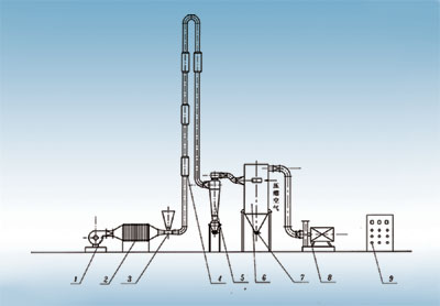 在干燥操作中主要控制干燥機中的空氣流量、空氣進口和出口溫度、加料量。其中加料量做為從屬變量進行調節(jié)。